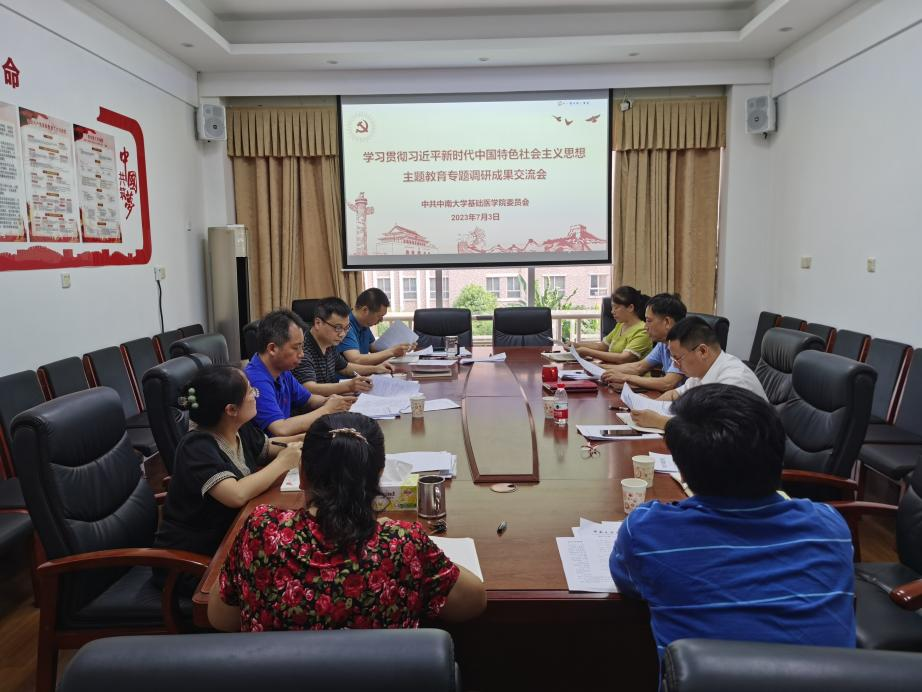 7月3日上午,基础医学院在湘雅新校区孝骞楼344会议室召开学习贯彻习近平新时代中国特色社会主义思想主题教育专题调研成果交流会,全体院领导出席会议并做主题发言。会议由院党委书记李顺长主持。
