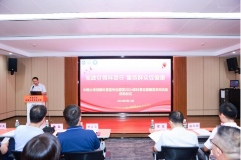 2024年9月12日下午,黄漫 基础医学院与湘雅公共卫生学院联合举办的2024年科普志愿服务系列活动启动仪式在湘雅公共卫生学院学术报告厅隆重举行。本次活动以“党建引领科普行,服务群众促健康”为主题,旨在通过科普教育活动,提升全民科学素质,促进健康中国建设。
