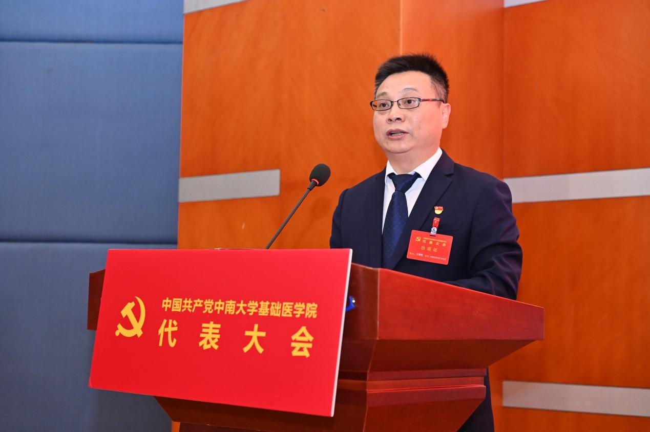 大会号召全院广大党员和师生员工更加紧密地团结在以习近平同志为核心的党中央周围,团结一心、凝心聚力,敢想敢拼、真抓真干,为奋力建设具有湘雅特色的国内一流基础医学院而努力奋斗,在全面推进中华民族伟大复兴的新征程中书写无愧于时代的学院新篇章。