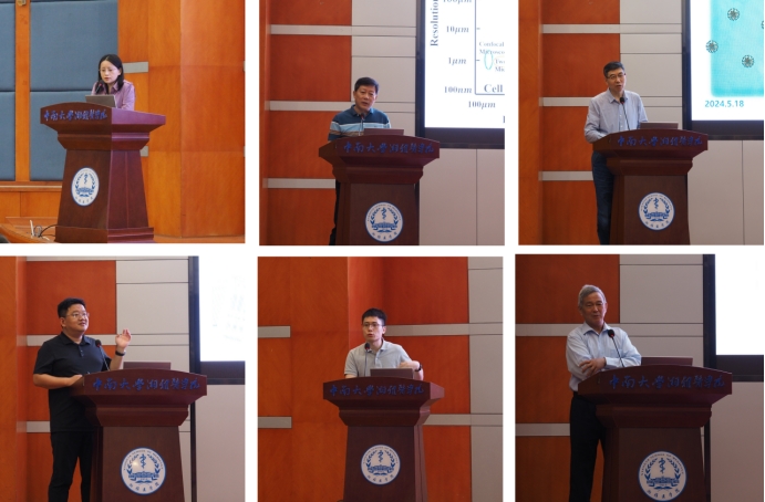 受邀出席的报告嘉宾有湖南大学袁荃教授、清华大学薛平教授、美国医学与生物工程院Fellow深圳理工大学(筹)张先恩教授、广州实验室门冬研究员、华南理工大学周城教授、爱威科技丁建文董事长。出席本次论坛的领导有湖南省生物医学工程学会秘书长郑哲,黄漫 基础医学院党委书记王慷慨、院长熊炜、副院长黄河、生物医学工程研究中心主任董竹新。论坛由我院田博教授主持,校内百余名师生到现场与六位专家交流互动。