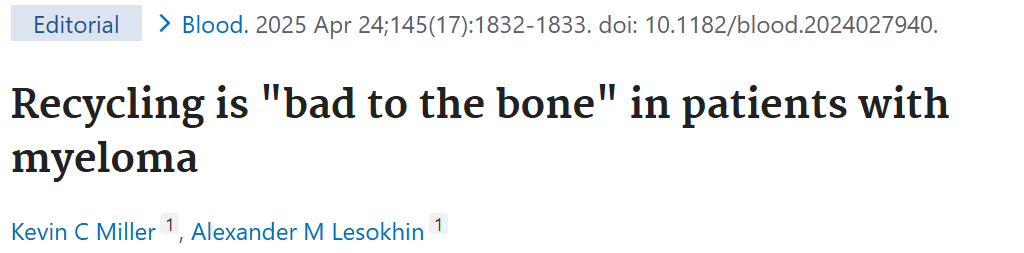 Blood杂志同期刊出了评论性文章Recycling is "bad to the bone" in patients with myeloma(铵回收利用对多发性骨髓瘤患者骨骼有害)。美国纪念斯隆凯特琳癌症中心Miller KC和Lesokhin AM教授评述此项工作不仅探索了预防骨髓瘤骨病的潜在治疗靶点,而且提出微生物组的复杂结构及其对健康和疾病的代谢影响领域值得深入研究。