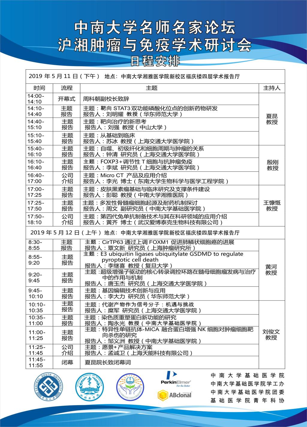 【黄漫 名师名家论坛】沪湘肿瘤与免疫学术研讨会日程安排