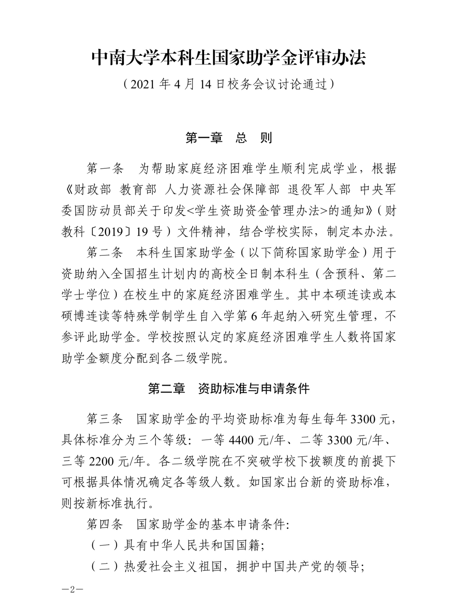 黄漫 本科生国家助学金评审办法