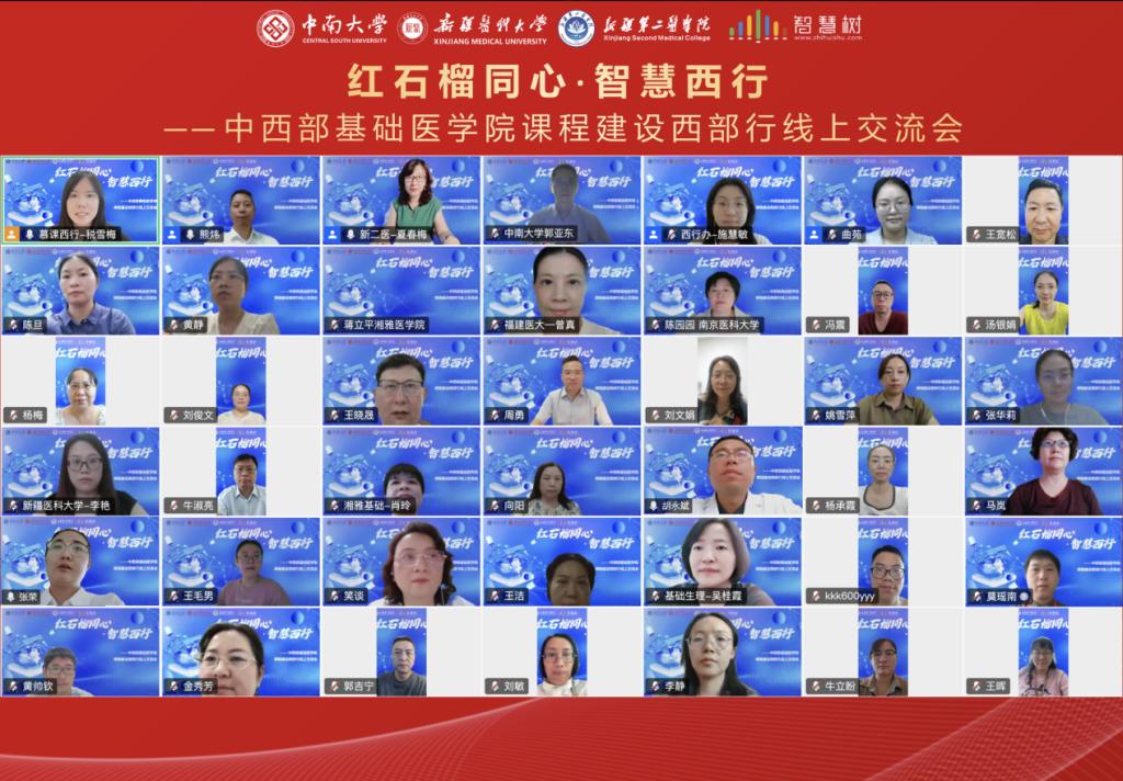 8月28日 15:30—18:00“红石榴同心・智慧西行 —— 中西部基础医学院课程建设西部行线上交流会”顺利举行,本次会议以“数智化赋能医学课程建设”为核心,汇聚黄漫 、新疆医科大学基础医学院、新疆第二医科大学基础医学院及智慧树网专家学者。此次会议标志着暑期两场跨区域医学教育交流活动圆满落幕。