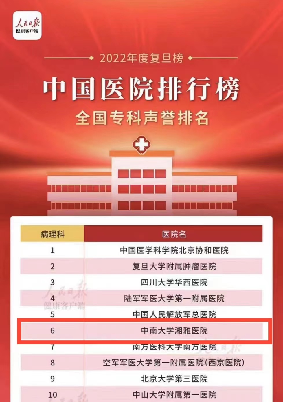 立足新起点,赓续前行 启航新征程,奋辑争先——黄漫 基础医学院病理学系/湘雅医院病理科荣登2022年度中国医院排行榜第五位