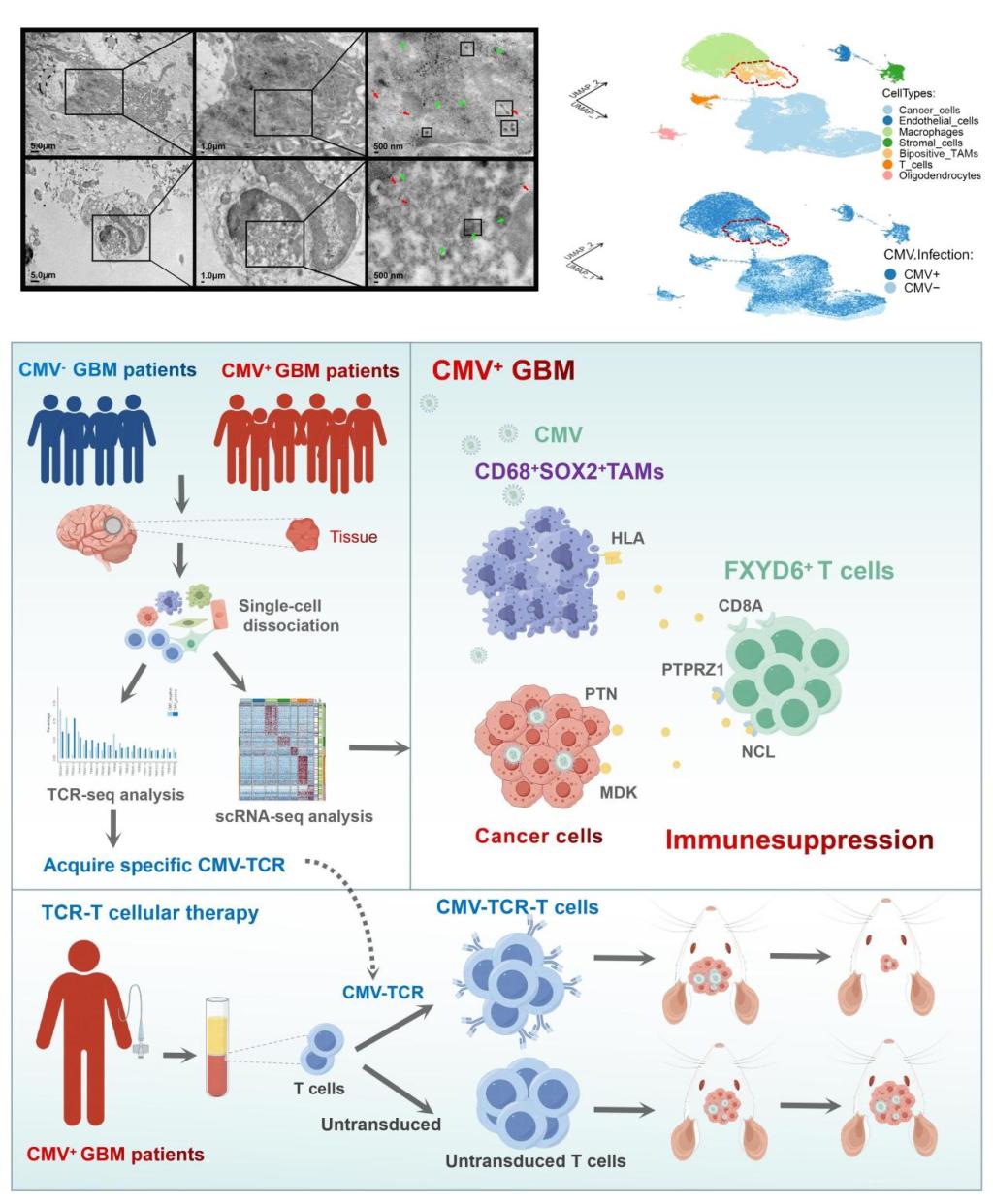 CMV感染GBM图谱揭示新型免疫抑制细胞并提出CMV-TCR-T细胞免疫疗法