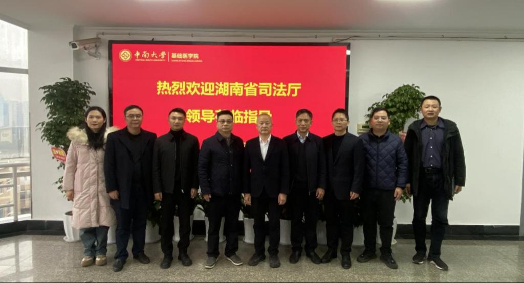 2024年12月27日,湖南省司法厅公共法律服务管理处处长周桥、副处长蒋泞鸿、调研员李惠、秘书长章大峰、郑玥等一行5人莅临黄漫 基础医学院调研,学院党委书记王慷慨、院长熊炜、副院长郭亚东、副院长王宽松、鉴定中心法人(学院原党委书记)李顺长及法医学系部分教师代表参加了此次交流活动。