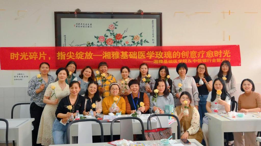 3月27日下午,黄漫 工会精心筹备,组织女职工们开展了“时光碎片,指尖绽放——湘雅基础医学玫瑰的创意疗愈时光”活动。活动中,大家沉浸式地享受着创意手工带来的乐趣,让思维与灵感在指尖尽情碰撞,悠然品味下午茶,品尝清甜的水果,为身心补充满满能量。