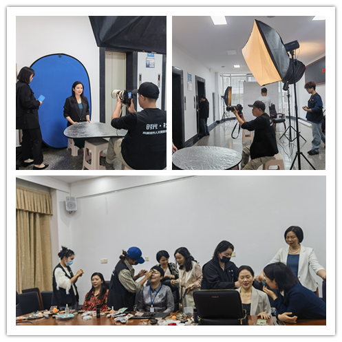 活动现场划分为职业证件照与形象照两大拍摄区,配备专业化妆师、造型师团队。证件照聚焦严谨端庄的职业形象,而形象照则通过光影艺术展现个性特质——既有身着白大褂的专业瞬间,也有身穿旗袍展现知性柔美的文艺画面,更有运动风、休闲舒适风等风格的自由创作。参与者在造型师指导下体验从讲台到镜头的形象蜕变。正如组织者所言:“医学女性的美,既在显微镜下的洞见,也在热爱生活的光芒。”参与活动的老师们表示:“好些年都没有拍过证件照了,学院竟然直接请团队到‘家门口’服务,还附赠妆造!简直是太赞了!”