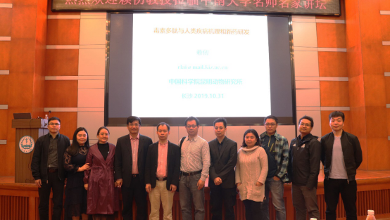 2019年10月31日上午,中国科学院昆明动物研究所副所长赖仞研究员应基础医学院医学寄生虫学系的邀请,在湘雅医学院新校区福庆楼四楼学术报告厅为我校师生带来一场精彩的学术报告。赖仞研究员的报告题目为:活性多肽与人类疾病机理和新药研发。