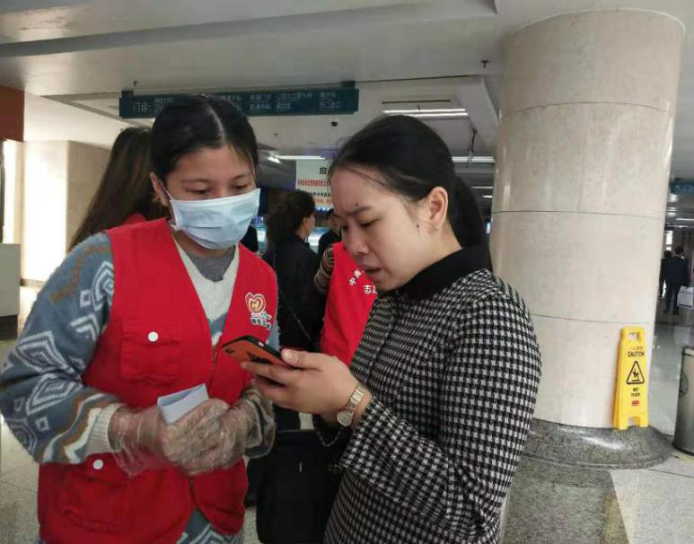 随后,党员同志们开始开展了包括挂号指导、门急诊指引、协助医务人员等多个环节的志愿服务活动。每个党员同志都极具责任感和耐心,积极为患者提供服务,解决患者问题,为患者就医提供了极大的便捷。在医院内,部分同志举着标语牌,共同倡导健康生活方式,维护医院无烟环境。同志们还协助工作人员,共同筹备“美丽携手,粉红相伴——2019关爱女性乳腺健康主题社区”活动。