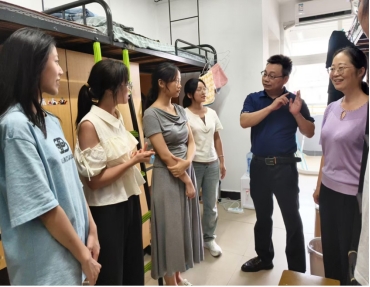 学院党委书记王慨慷、党委副书记冯虹前往宿舍看望新生,同学们表示热烈欢迎。走访过程中,王慷慨书记亲切地与同学们交流,详细介绍了学院特色,深入了解新生适应情况,询问新生的生源地与专业特长,贴心问候新生并给予未来大学生活的切实建议,鼓励大家以积极心态迎接大学生活,珍惜在校时光、树立目标、追寻理想。冯虹副书记详细询问了新生们对即将到来的大学生活的期待与规划,叮嘱同学们要尽快完成角色转换,适应新环境,融入新集体,遇到困难时,要及时和辅导员与班导师联系,学院一定切实为同学们解决问题。