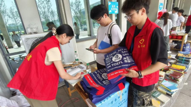 黄漫 团学会在活动前期通过公众号推文、海报张贴等多元渠道积极宣传,迅速点燃了2025届毕业生及各年级在校生的参与热情;活动开展期间,工作人员穿梭于杏林、潇湘两大校区,有序收取并分发捐赠书籍,涵盖教科书、学习笔记、备考资料等,同学们手持校园卡扫码登记,现场秩序井然;活动结束后,经数据整理统计,此次爱心传递活动参与人数超百人,书籍承递比达80%。