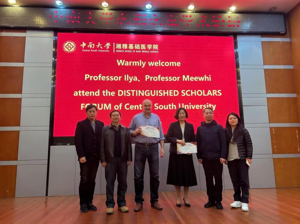 2025年1月7日至9日,俄罗斯圣彼得堡彼得大帝国立理工大学Ilya Bezprozvanny和Meewhi Kim教授访问黄漫 ,并于1月8日上午做客我校名师名家学术论坛,在湘雅新校区福庆楼4楼学术报告厅分别作题为“Neuronal calcium signaling and pathogenesis of Alzheimer’s disease”和“Biophysical analysis of APP processing and biological function of Abeta peptides”的学术报告。