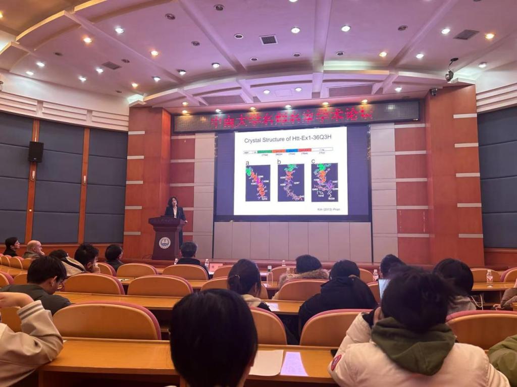 Meewhi Kim教授应用生物物理和结构生物学技术研究与神经变性相关蛋白质结构和功能,为了解这些疾病的发病机制提供重要的信息。在学术交流环节,Ilya Bezprozvanny和Meewhi Kim教授对于师生的提问给予了详尽而深入的解答,现场氛围热烈。